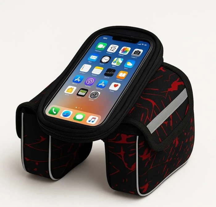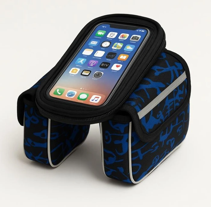 התיק כולל תא ייעודי עם חלון שקוף לטלפון, המאפשר שימוש במסך המגע בזמן הרכיבה – ניווט, שיחות ומוזיקה בלי להוציא את המכשיר.