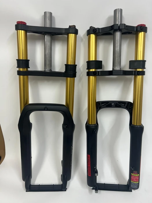 MOZO זהו מזלג כפול DH, דגם משופר. נוספה התאמת קשיות. נהדר עבור פרויקטים של אופניים חשמליים כבדים (40 ק"ג ומעלה). לגלגלי 20 אינץ'. חומר: מסגרת אלומיניום. מהלך 180 מ"מ. תותב מתחת ל-20 מ"מ! משקל 3.7 ק"ג.