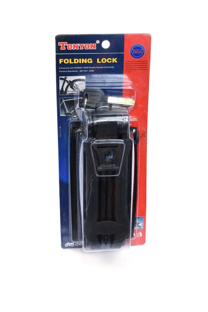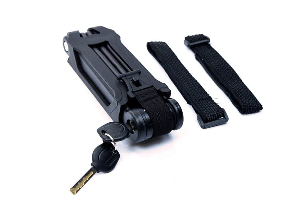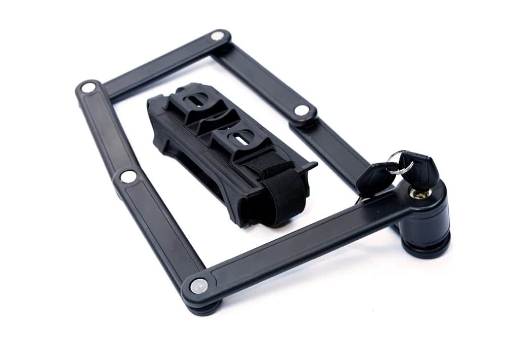 המנעול מתקפל וקל לנשיאה ומגיע עם מתקן לשלדת האופניים.